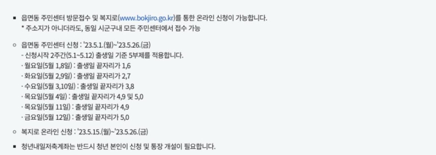 그러면 출생일 기준 5부 제로 주민센터에서 신청받으니까