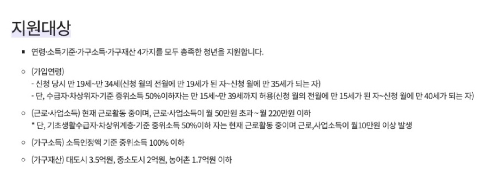 청년내일저축계좌 지원대상