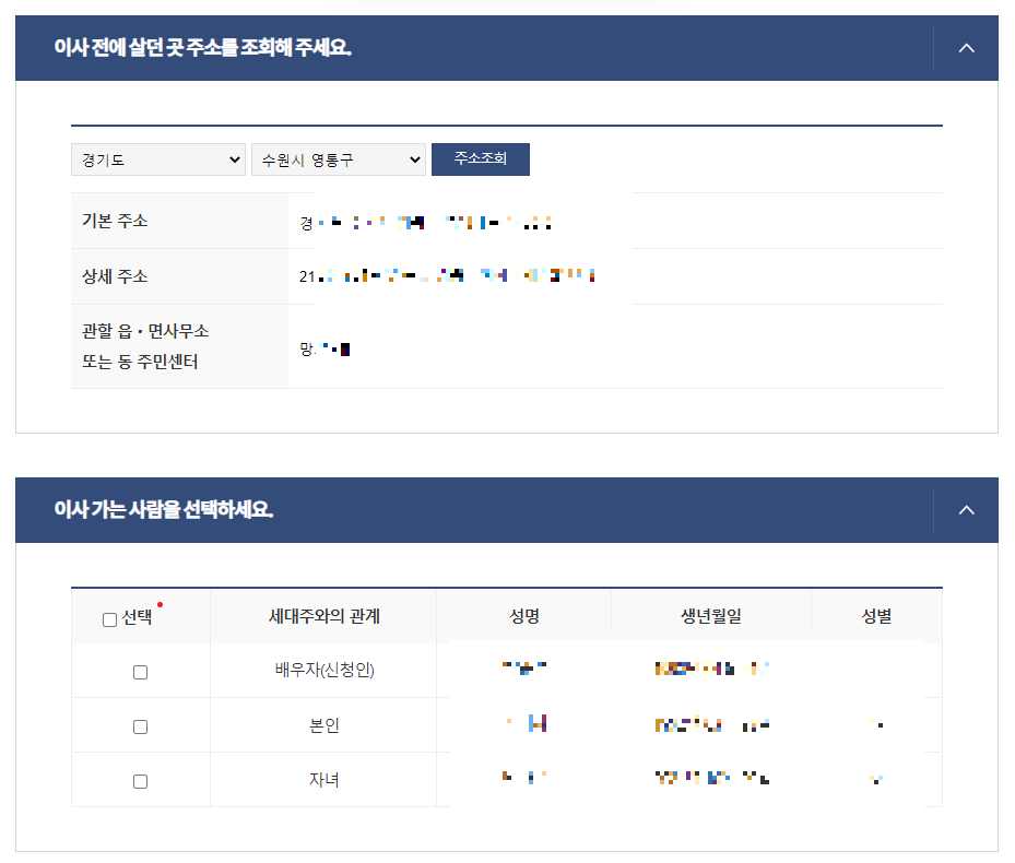이전에 살있던, 현재 전입신고 되어 있는곳의 정보를 입력하세요.