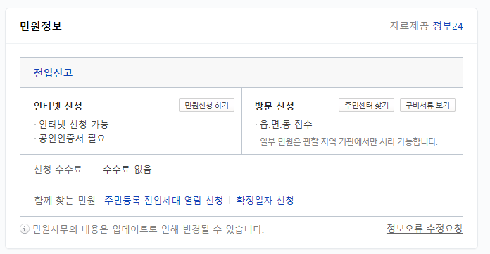 전입신고 | 민원안내 및 신청 | 민원24 | 정부24