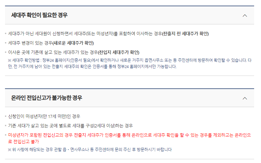 전입신고는 인터넷 / 방문 신청 모두 가능하기 때문에